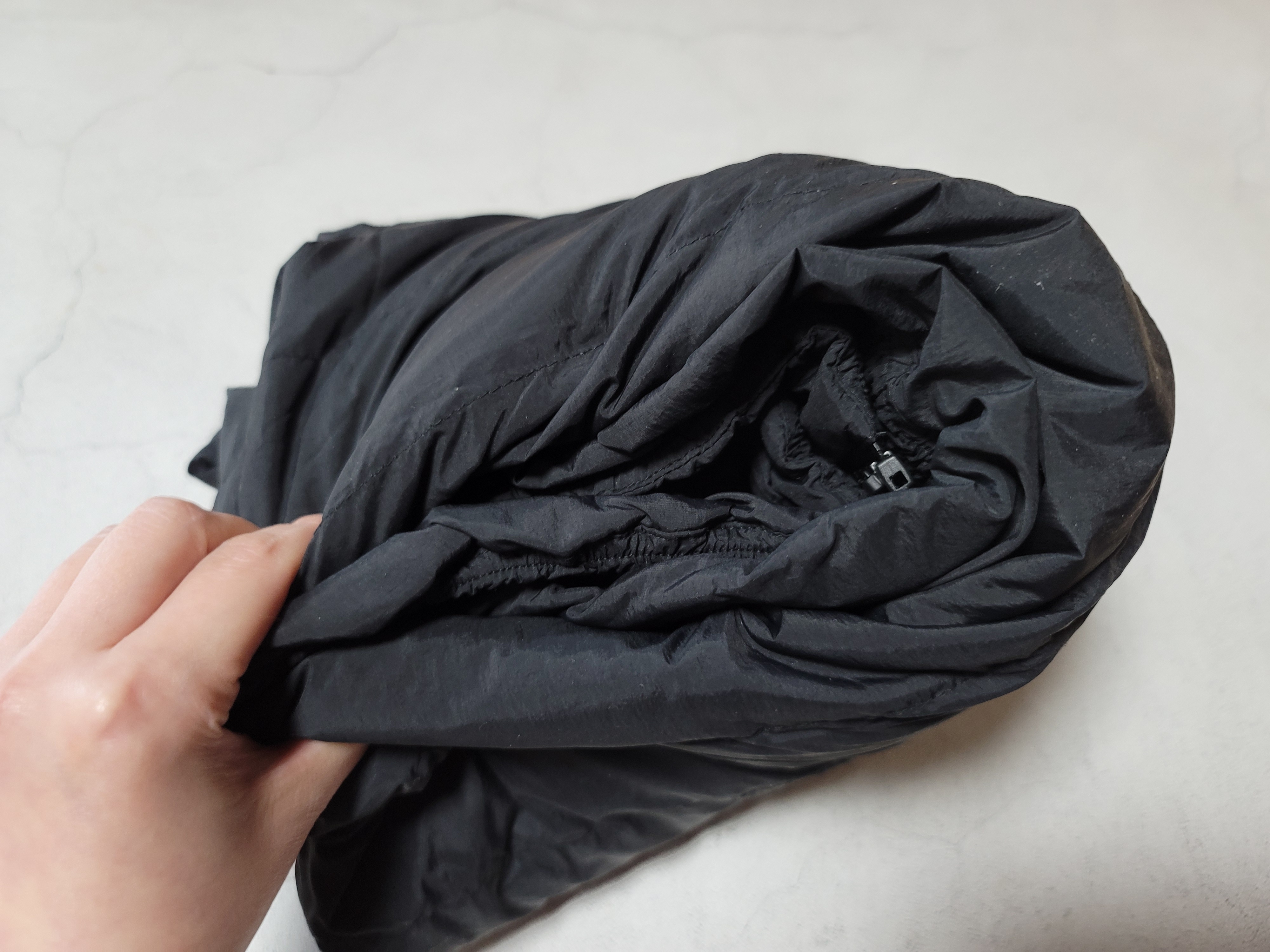 돌돌 말아서 잡아보면 딱 한 줌 진짜 가볍긴 한데 얇아서 아주 따뜻한 느낌은 아니에요